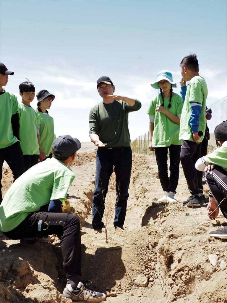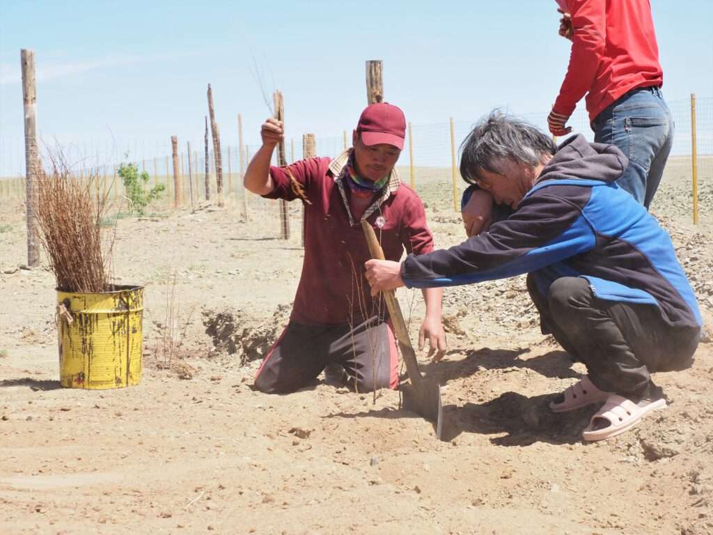 Die Bürgerinitiave, allen voran der Bürgermeister, wollen in der trockenen Steppenlandschaft der Mittelgobi einen grünen Park für die Bevölkerung entstehen lassen. Sie wollen damit auch das Bewusstsein der Steppen-Kinder für Bäume wecken.