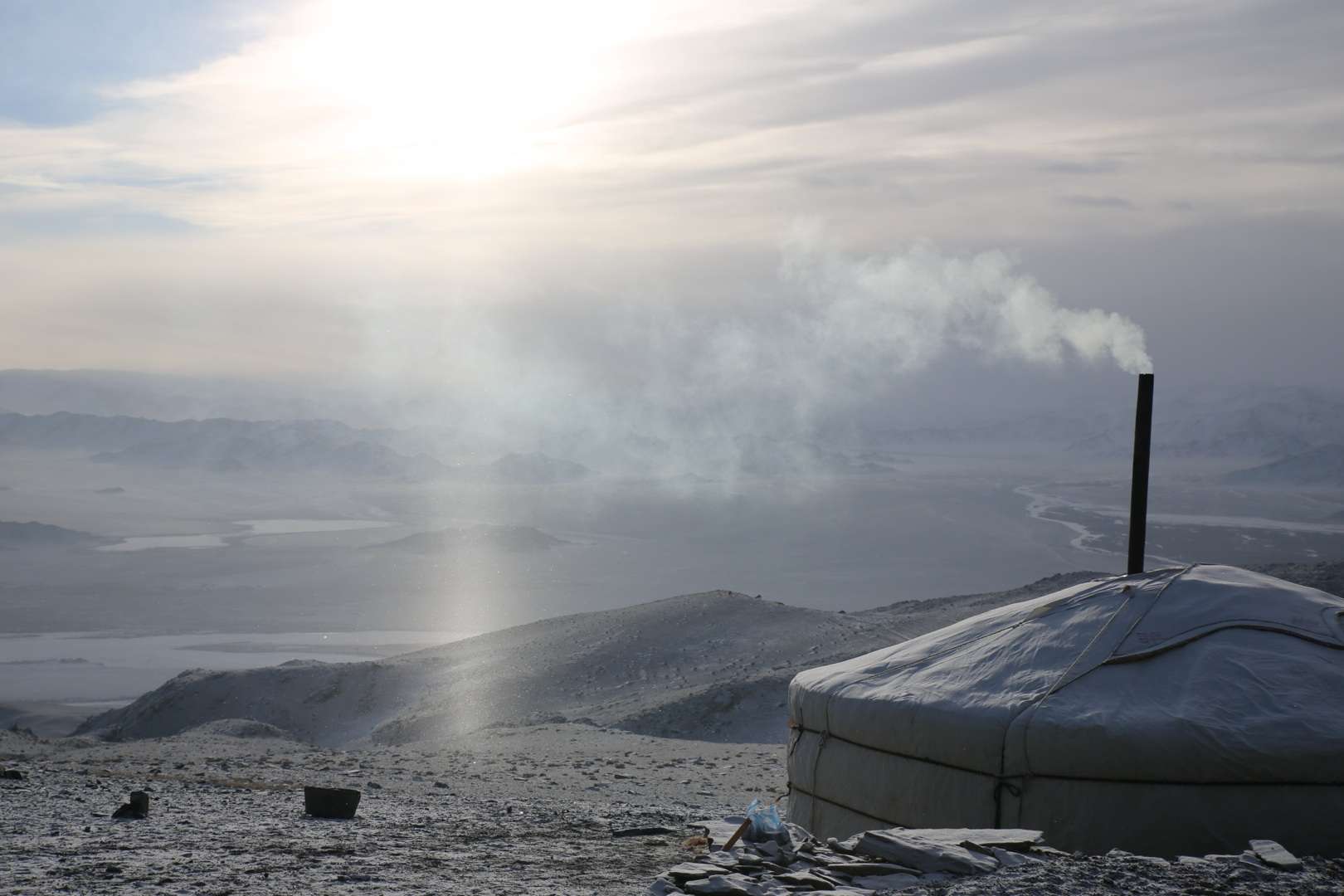 Karte «Jurte in der Sonne» gefaltet A5 mit Gedicht von Galsan Tschinag auf der Innenseite: