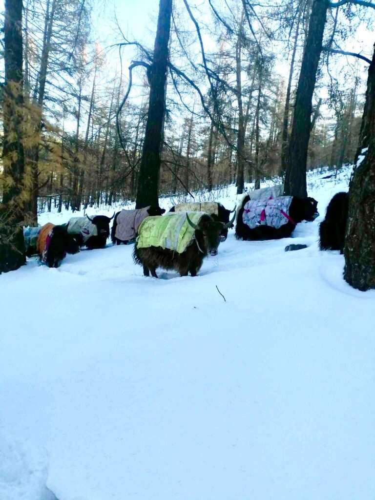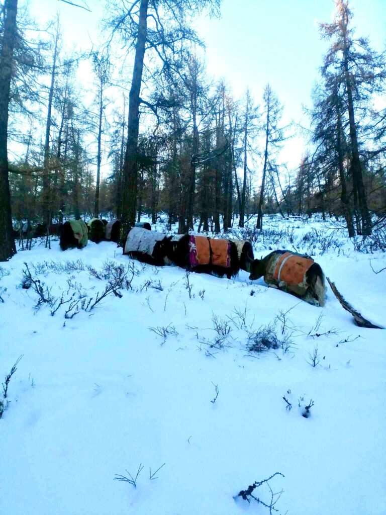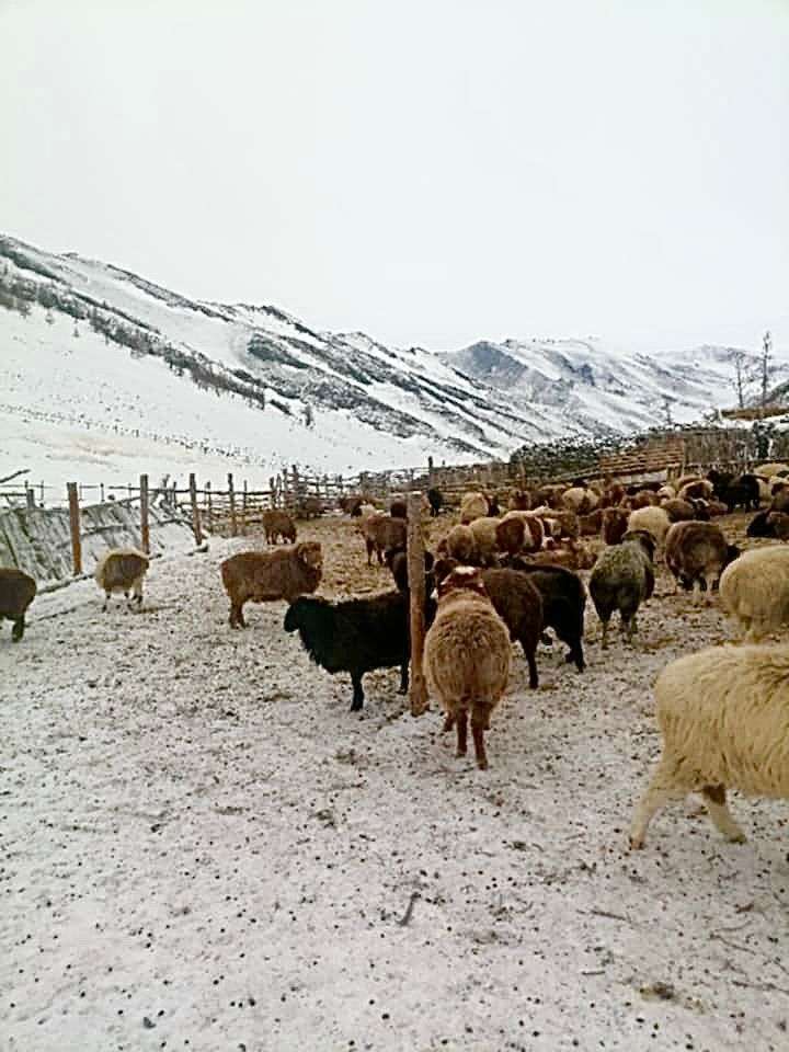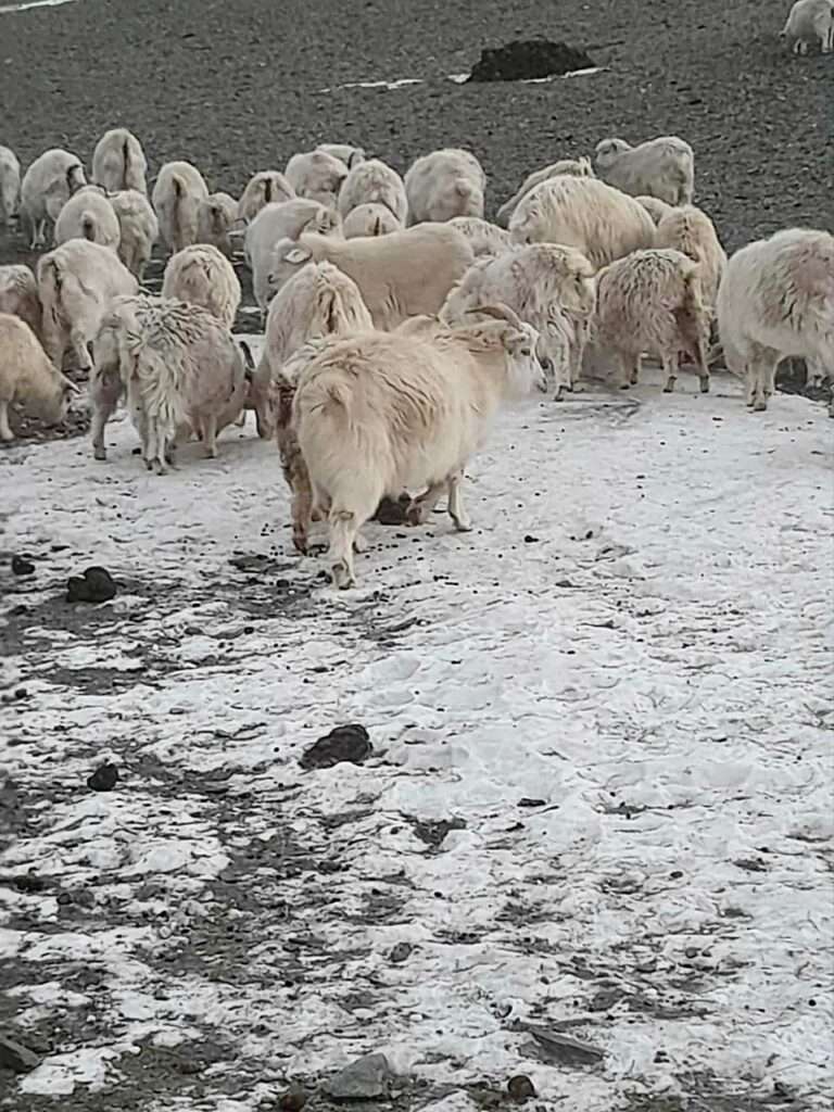 Im Januar beginnen für die Nomaden die 9 x 9 kältesten Tage. Jetzt, in der dritten Januarwoche herrscht grosse Kälte, nachts bis Minus 40°C und tagsüber Minus 25°C. Im Sommer gab es wenig Niederschläge, so dass kaum Gras wachsen konnte, dass den Tieren jetzt als Winterfutter dient. Wieder mussten die Tiere viel zu früh mit Heu und Kraftfutter von der Nomaden versorgt werden, weil sie zu wenig Nahrung in der Natur finden. Die Muttertiere brauchen besonderen Schutz und Aufmerksamkeit, damit sie ihre Leibesfrucht nicht verlieren. Und wieder sind die Nomaden in grösster Sorge und bedrohlicher Not.